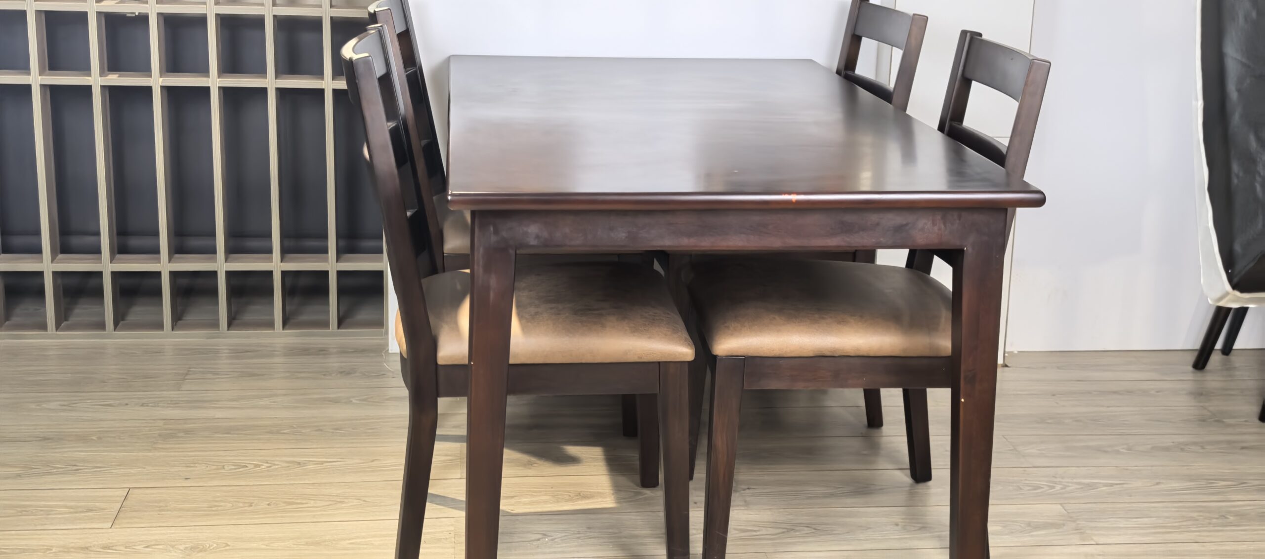 Elevate your dining room with the distinguished presence of the Eako Grandeur Rectangle Dining Table, expertly crafted from genuine hardwood mahogany. This magnificent table is designed to be the heart of your home, offering a perfect setting for daily family meals, festive celebrations, and cherished gatherings in Kenya.