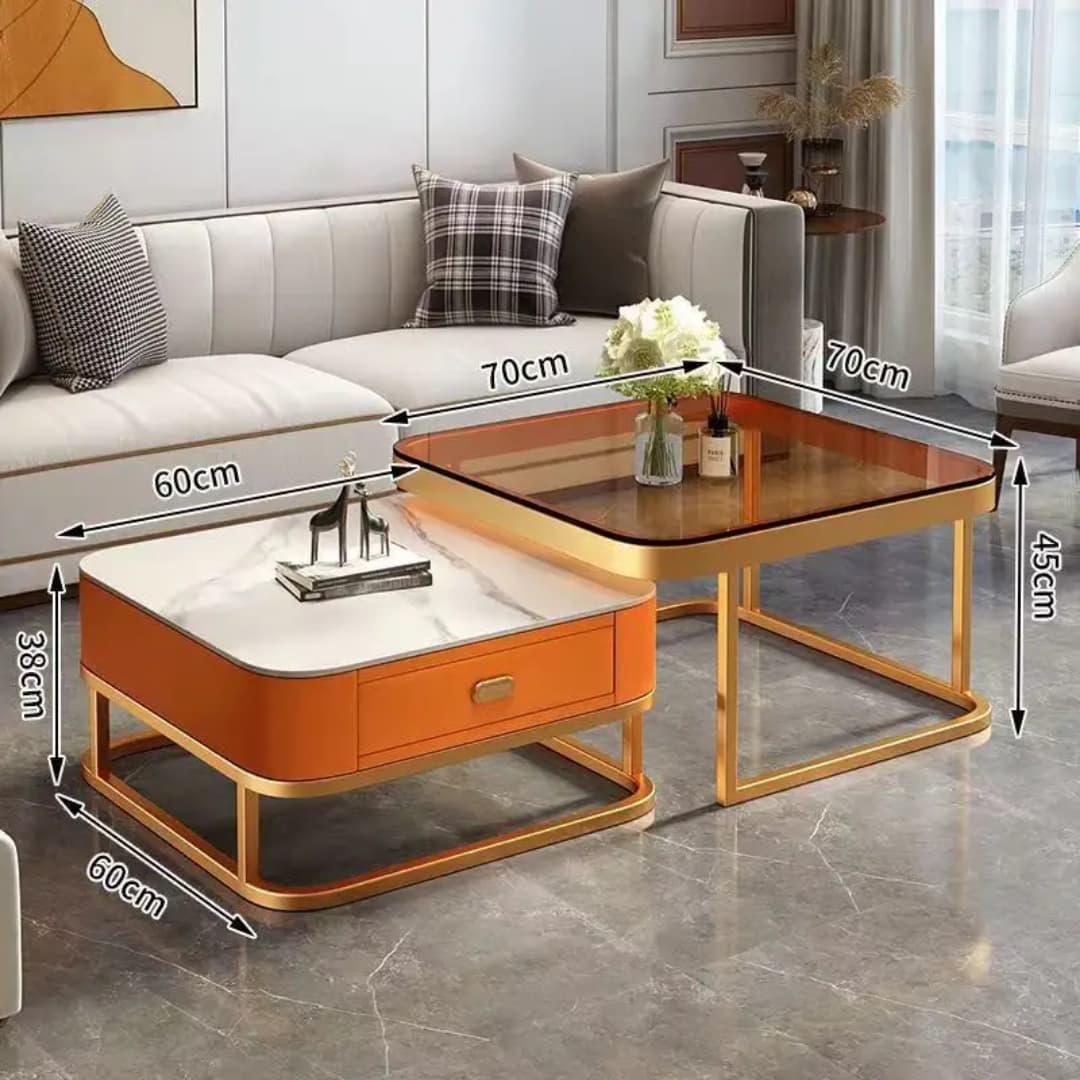 Add a touch of retro charm with our square Coffee Table. Featuring a smooth, circular surface and a striking geometric base finished in rich brass, this table pays homage to mid-century modern design. Its airy silhouette and warm metallic tones create a focal point in your living room, while providing a practical surface for everyday use. Gather around this iconic piece and enjoy its timeless appeal.